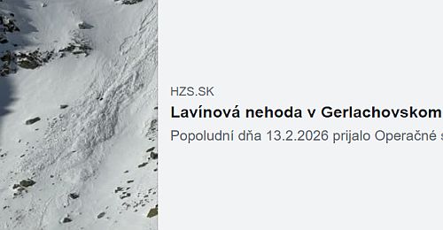 Czech climber swept away by avalanche in Tatras, died at scene A Czech climber was swept away by an avalanche yesterday in the Gerlachovský štít massif in the High Tatras and died at the scene. This was reported by the general media and the Slovak Mountain Rescue Service. According to the latter, the avalanche in the direction of Gerlachovský kotol swept away a 32-year-old climber of Czech national ... full story