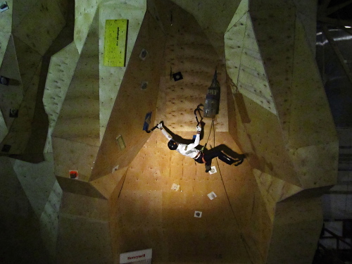 In the middle of the final route there was specific trick with the artificial ice icicle that broke away and the climber was lowered down and there he continued far. Look on the video.