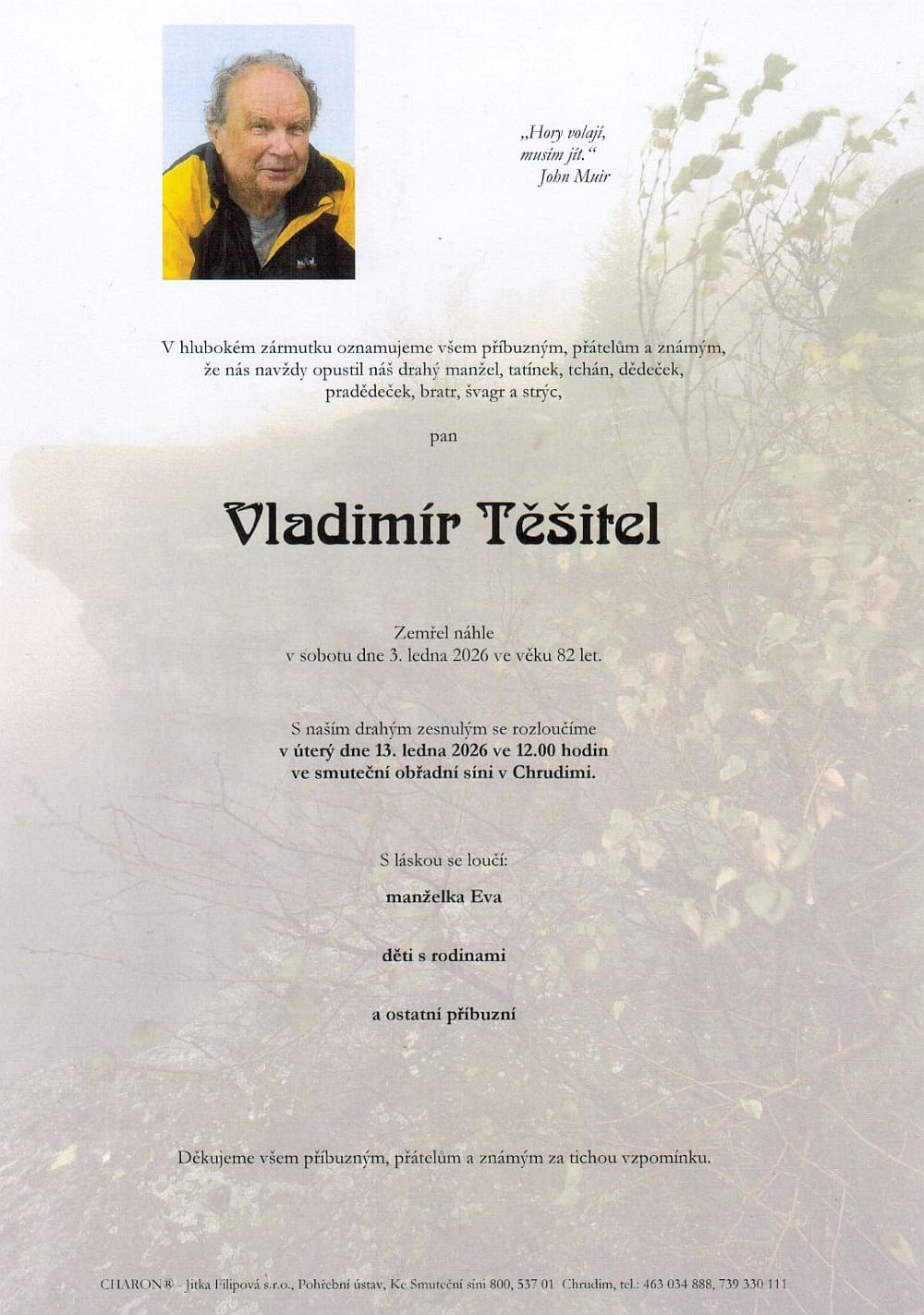 Vladimír Ťéša Těšitel, doyen of Chrudim mountaineers, has died