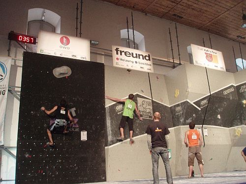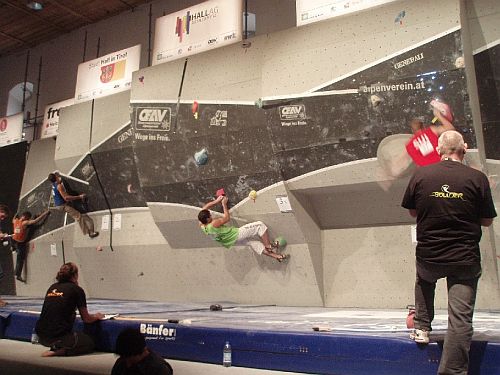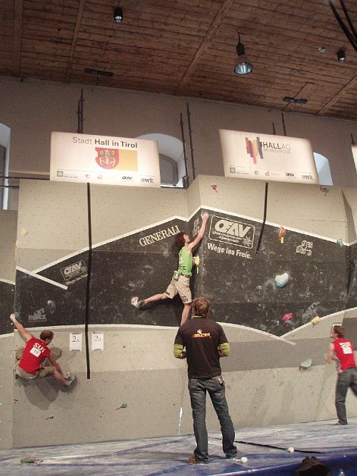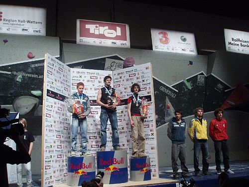 Czech Adam Ondra got bronze medal on his first World Cup competition in bouldering, that took place on Friday and Saturday (May 1-2, 2009) in Hall, Austria.
