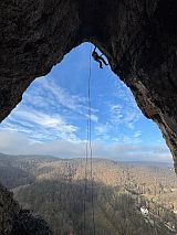 naproti přes parkoviště. Profil rovný z překližky - kolmá / mírně převislá, cca 8m vysoká stěna, některé chyty se protáčejí. Vstup na vlastní nebezpečí dle provozního řádu, volně, celoročně. Vlastní vybavení s sebou (3-4 expresky), cesty končí řetězy. Část stěny je osazena více chyty pro bouldering. |