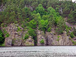 Jedno z novějších míst pro lezení na skalách omývaných vltavskými peřejemi.
